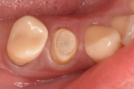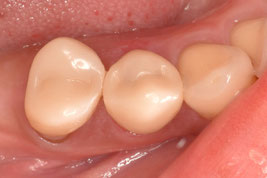 軸面の健全歯質を大幅に残したうえで、オーバーレイの形態で修復しました。インジェクションモールディング法を応用しております。直接修復なので、海外からの来院であっても、短期滞在で対応可能です。