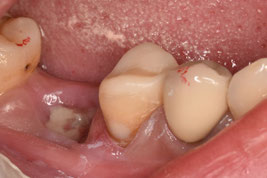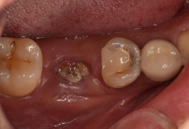 右下6番も根管治療を断られてしまい、痛みが酷かったため抜歯したそうです。抜歯してからも強い違和感と腫れが続いているそうです。前医で撮影したレントゲンデータをもとに、処置を進めることとしました。