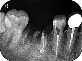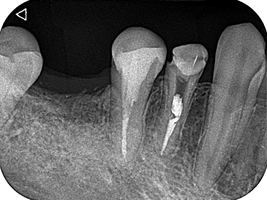 1回法で根管治療を終わらせてデンタルを撮影したところ、目を疑う光景がありました。